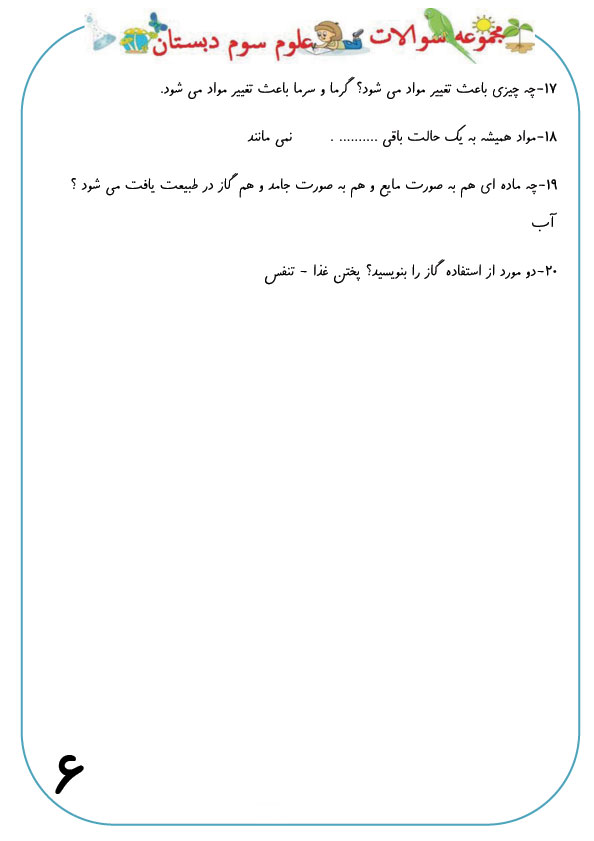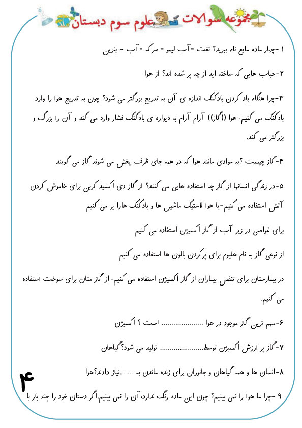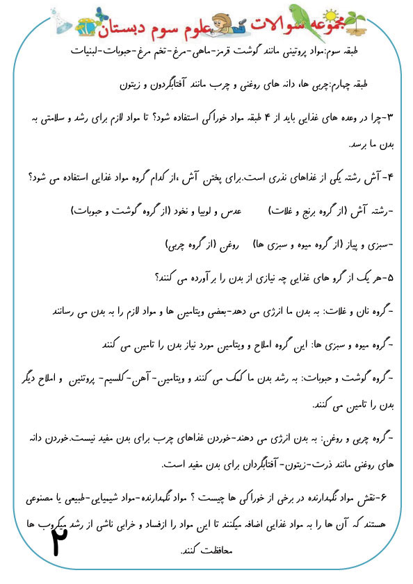 مجموعه سوالات علوم سوم ابتدایی درس 4،5،6