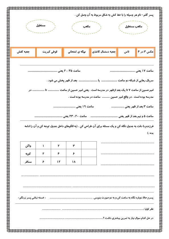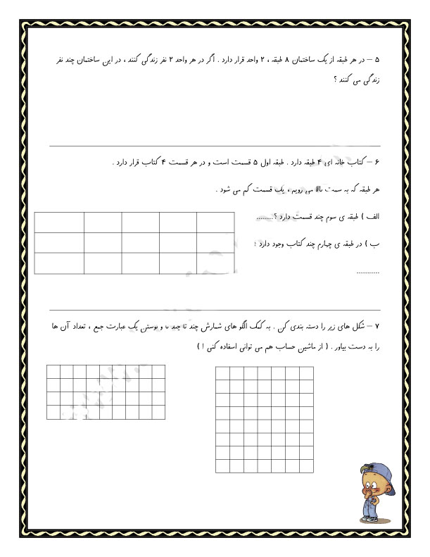 فرزندان عزیزم در این قسمت تعدادی نمونه سوال ریاضی قرار دادم سعی کنید با تمرین کردن آنها توانایی خود را در ریاضی افزایش دهید.