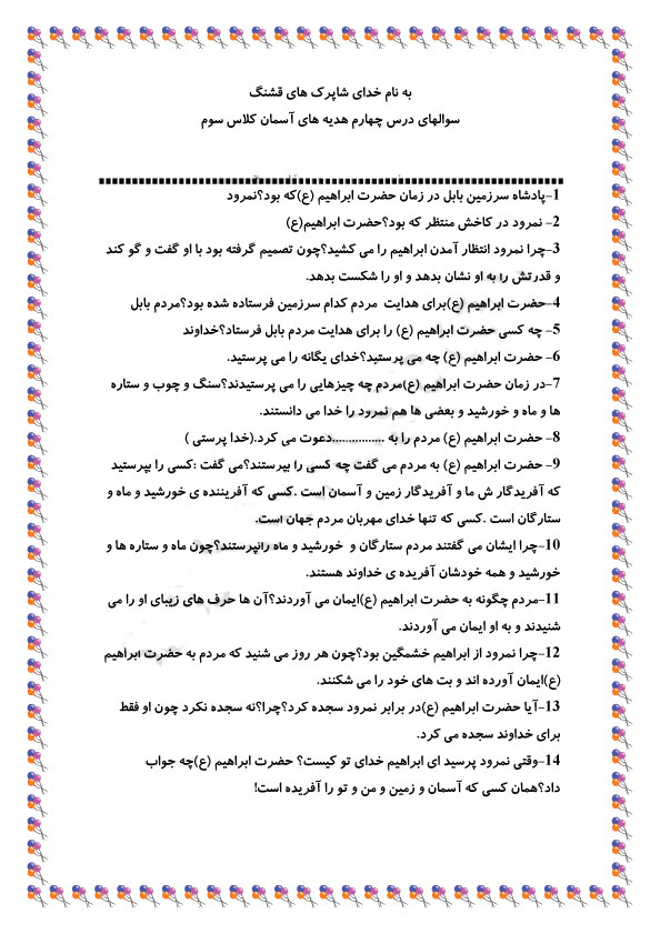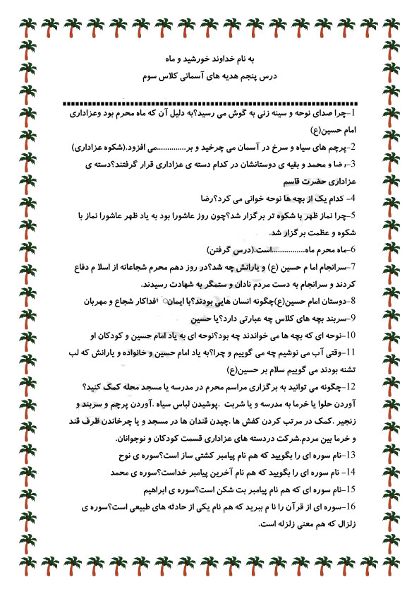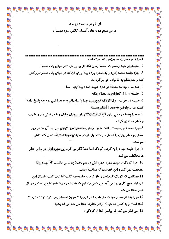 فرزند عزیزم سوالات را دانلود کن